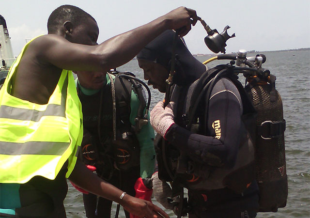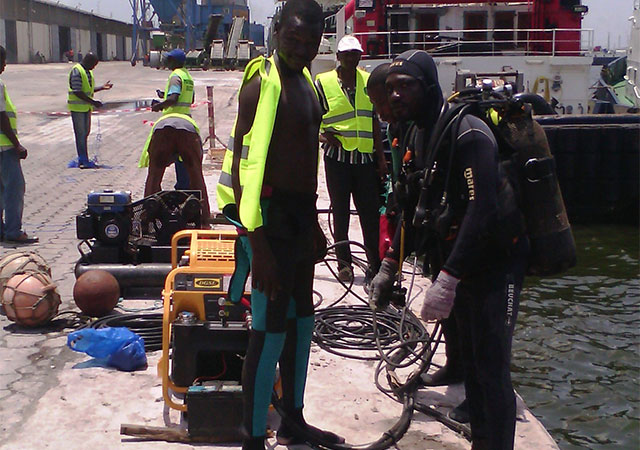 Réparation du bateau de AQUAMS au port d'Abidjan